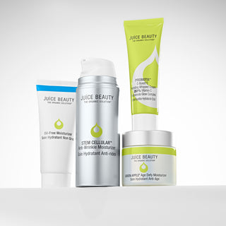 Our proprietary, antioxidant-rich JUICE base combines the free-radical-fighting powers of grape, apple, aloe, and lemon. Infused with additional potent actives, our formulas are supercharged to deliver exceptional youth and radiance-boosting benefits.